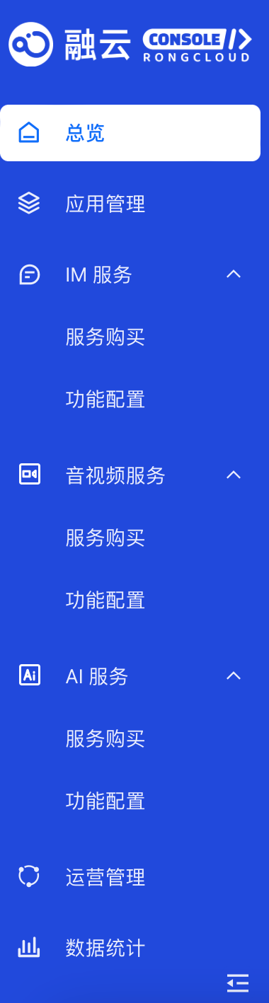 为更好的对开发者提供服务,融云对开发者后台进行了结构优化,以下为优化后主要结构说明: