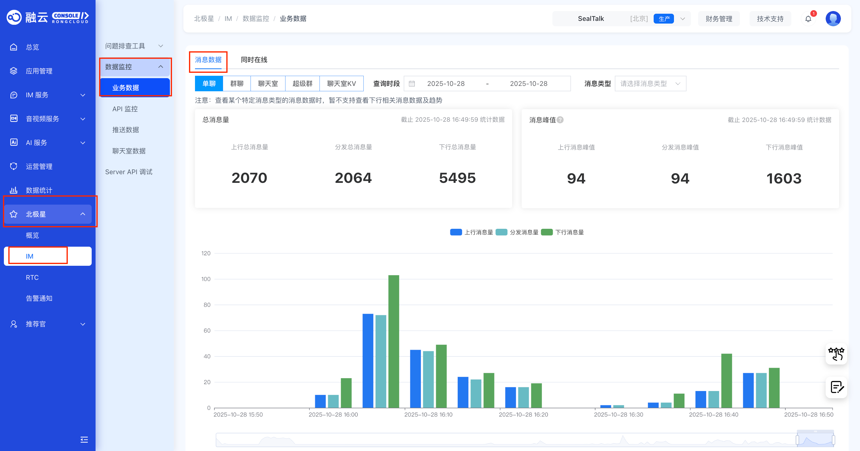 - 消息峰值:上行消息峰值、分发消息峰值、下行消息峰值
