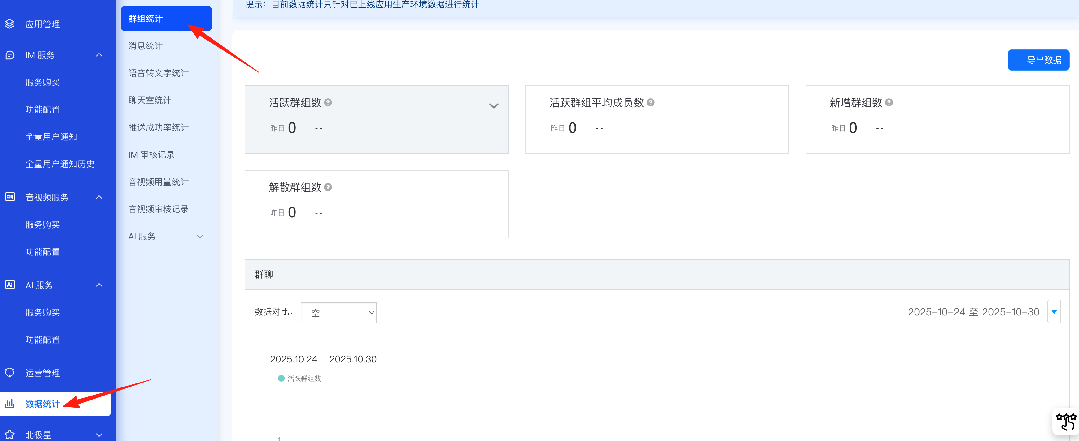 | 群聊上行消息数 | 用户发送到融云服务器的群聊消息数(包含用户和 API 发送)。 | |