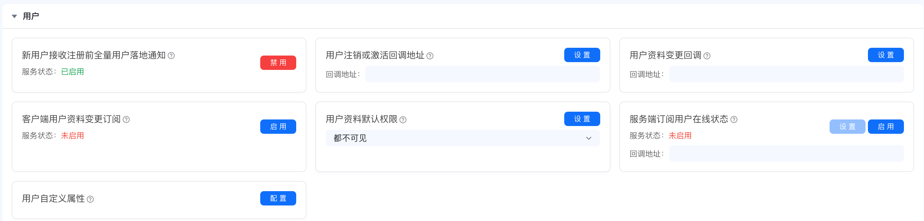 - 功能说明: 当用户资料发生变更时,实时同步到您的应用服务器,功能开通后 15 分钟生效,查看开发文档。