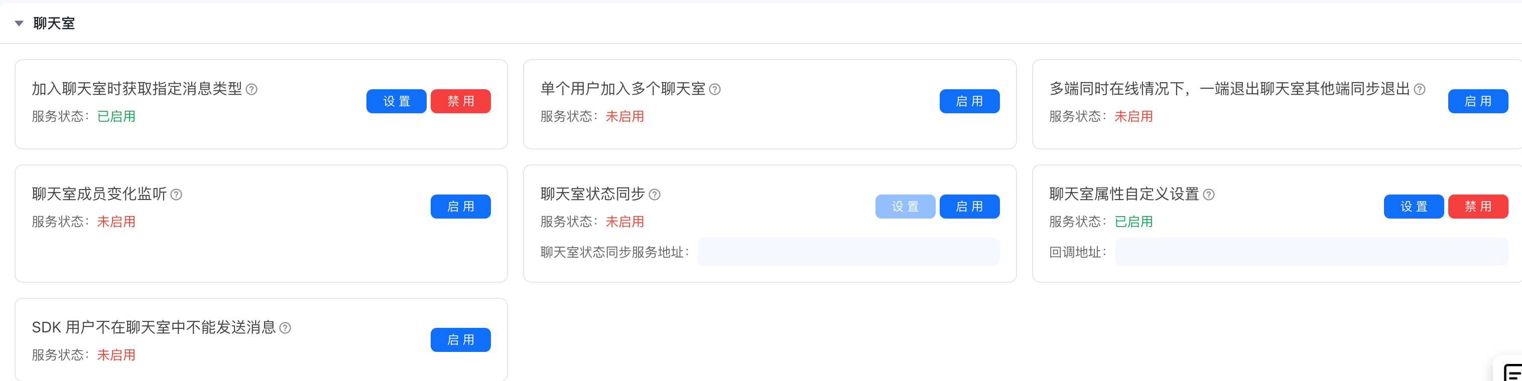 - 功能说明:用户未加入聊天室时可以向聊天室中发送消息。开启后,不在聊天室的用户不能发送消息。