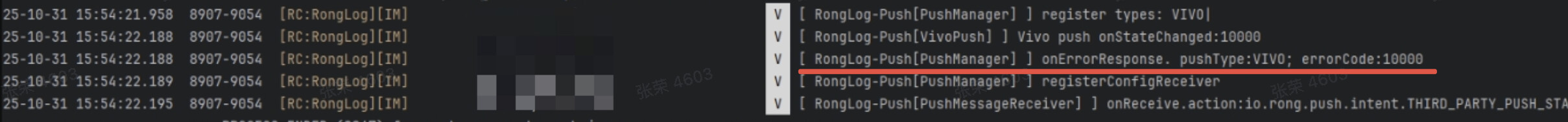 RongLog-Push, 查看配置过程是否正常。只要日志中出现了 Success to config push, 即代表第三方推送配置成功。 -
